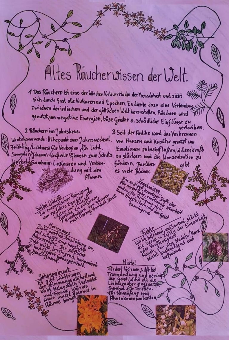 Wir erklären dir hier, wie du verschiedene einheimische Kräuter, Pflanzen und Harze, welche bei uns auf Wald, Wiesen, Felder und in unseren Gärten zu finden sind. Somit für die altbewährten Duftmittel zugänglich sind und wir sie sammeln können. Dieses wertvolles Pflanzenwissen, kann sowohl körperlichen wie auch seelischen Beschwerden entgegenwirken und uns im Alltag eine angenehme Unterstützung bewirken. Die Pflanzen, Harze und Wurzeln sind für uns Menschen zur rechten Zeit immer verfügbar. Das Ganze Duftwissen findest du im Internet oder in wunderschön aufgebauten Büchern von Maria Treben oder anderen Bücher über Duftöle.